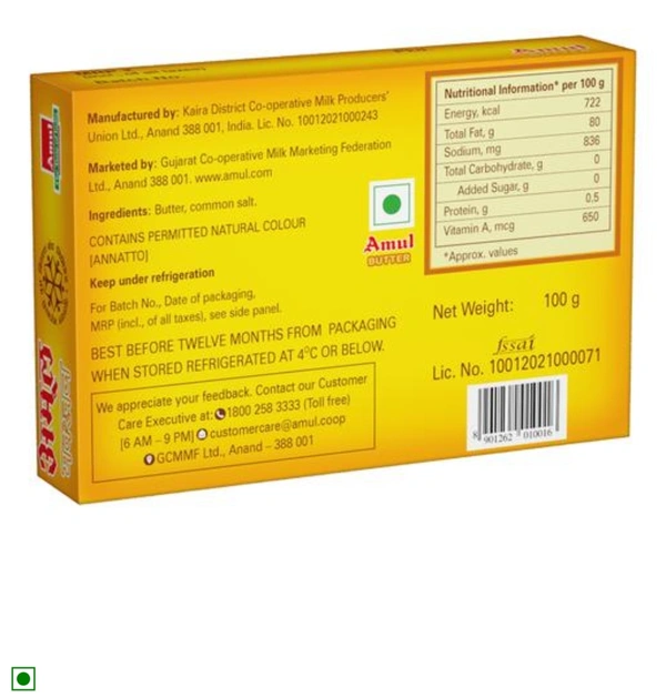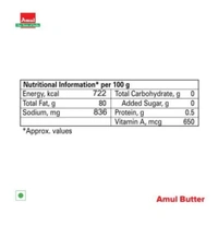 Pasteurized Amul butter is a delicious bread spread, an essential ingredient of baking and a known enhancer for many food items. This smooth creamy chunk from the house of Amul can be added to sauce, Indian gravy and baked products.