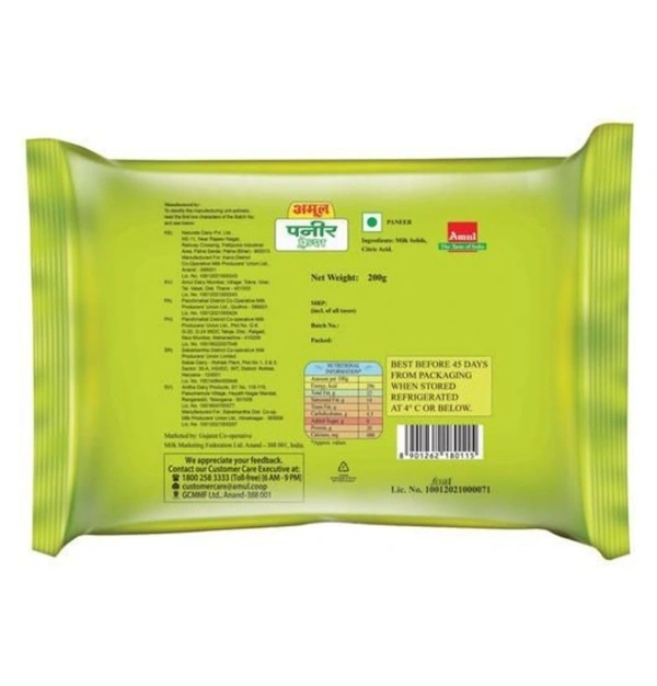Paneer is also called cottage cheese. Amul Fresh Paneer is made from pure milk, hygenically packed untouched by hand. It adheres to FASSAI norms. Amul fresh paneer is a rich source of Protein.