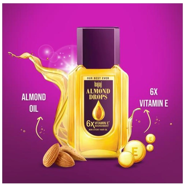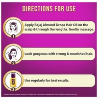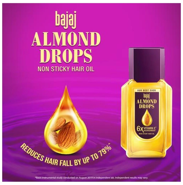 Now style your hair any way you want without the fear of hair fall, as Bajaj Almond Drops hair oil has got your back! Bajaj Almond Oil can reduce hair fall by up to 79%*, strengthen hair, and make them up to 50% more shiny! The new and improved Bajaj Almond Drops Hair Oil is enriched with 6x Vitamin E^ & Almond Oil to help you get the shiny, strong hair you’ve always wanted. This oil for hair fall reduction works to strengthen and nourish your hair and, as a result, reducing hair fall due to breakage. It is light, non-sticky and the perfect hair growth solution. So don’t wait to flaunt beautiful hair, that is strong inside and shiny outside, with new hairstyles every day! ^Compared to ordinary (unbranded) hair oil. As per IMRB Kantar World panel 2018-19 data. *Hair fall due to breakage, basis instrumental study conducted on August 2019 in an independent lab. Independent results may vary.