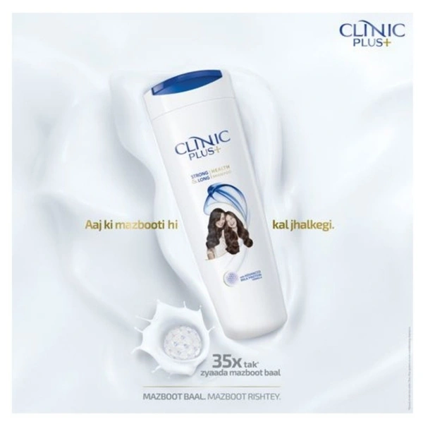 Tomorrows strong and long hair needs a strong foundation today! Clinic Plus Strong & Long Health Shampoo with the goodness of milk protein makes your hair 35 x stronger. Its advanced milk protein formula contains an essential protein element which body cannot produce. This essential protein penetrates into each hair strand providing nourishment every time you wash your hair with Clinic plus shampoo. For best results wash your hair daily with Clinic Plus Strong & Long Health shampoo. Use Clinic Plus conditioner every time you shampoo for soft and silky hair.Features & Benefits- Clinic Plus Strong & Long Health shampoo nourishes and makes hair upto 35x strongerWorks gently on your hair from root to tip Can be used by the whole familySuitable for all hair typesThe milk protein penetrates each hair strand providing nourishment each time you wash your hair For best results wash your hair daily with Clinic Plus Strong & Long Health shampoo