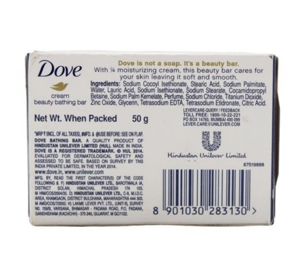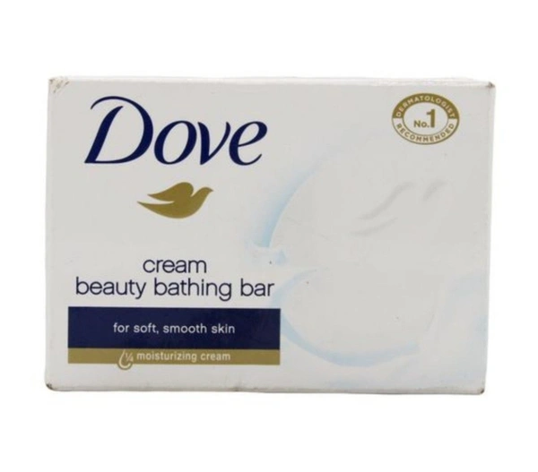 Dove Cream Beauty Bar combines a gentle cleansing formula with Doves signature 1/4 moisturizing cream to give you softer, smoother and more glowing skin. The mild cleansers help your skin to retain its natural moisture rather than stripping it away. ÀšÃ‚ This Dove bar even helps to replenish nutrients that are lost during the cleansing process - where a regular soap bar might leave your skin feeling dry and tight, a Dove White Bar leaves it feeling soft and smooth. ÀšÃ‚ Its not a soap - its a beauty barÀšÃ‚ Washing with regular soap can cause skin to feel dry, tight and irritated as some cleansing Ingredients strip skin of essential nutrients. What makes Dove different? Its gentle cleansers help your skin retain its natural moisture and its mild formula is kind to your skin. Dove is the No.1 Brand recommended by dermatologists in India. ÀšÃ‚ For best results, lather up your Dove Beauty Bar and massage the smooth, creamy lather over your face and body before rinsing thoroughly. For soft, smooth hands, you can also enjoy regular hand-washing throughout the day with your Dove bar. Soap may dry out your hands, but the classic moisturizing formula of Dove bars will leave skin softer, smoother and more glowing.ÀšÃ‚