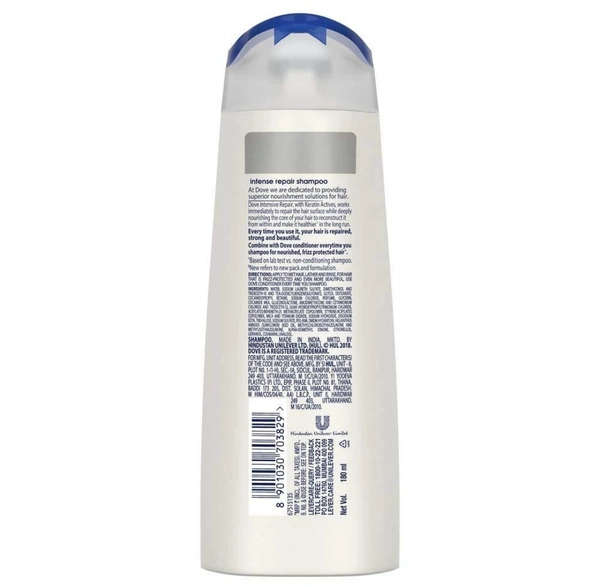 Is your hair showing signs of damage -split ends, dryness, roughness or hair fall? The secret of how to repair damaged hair? A strengthening shampoo that helps to treat the signs of damage with two-way care for both long and short-term results. Give your hair the essential care it deserves with Dove Intense Repair Shampoo. The Intense Repair Shampoo works to restore the health and shine of your hair. It contains Fibre Actives, which penetrate your hair and rebuild damaged hair, to renew the lost gloss and vigour and give life to your damaged hair. Gentle enough for daily use, Dove Intense Repair Shampoo helps to immediately repair strands while nourishing them from within for healthy-looking hair thats stronger. This shampoo for damaged hair repairs signs of damage for smooth and strong hair. It is formulated with Fibre Actives, this shampoo for damaged hair reinforces strands to prevent the signs of damage on hair. Nourishment for damaged hair to leave you with beautiful looking hair, all day long. Based on lab test with Dove Intense Repair system vs non-conditioning shampoo. Strength against hair breakage, based on lab test with Dove Intense Repair system vs. non-conditioning shampoo.