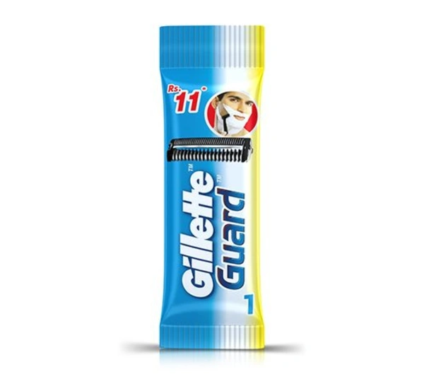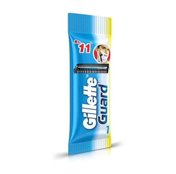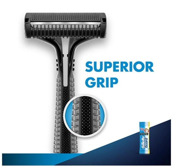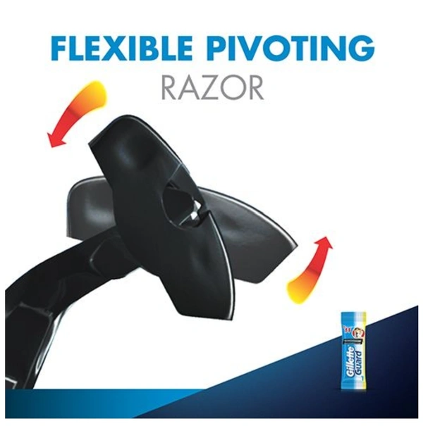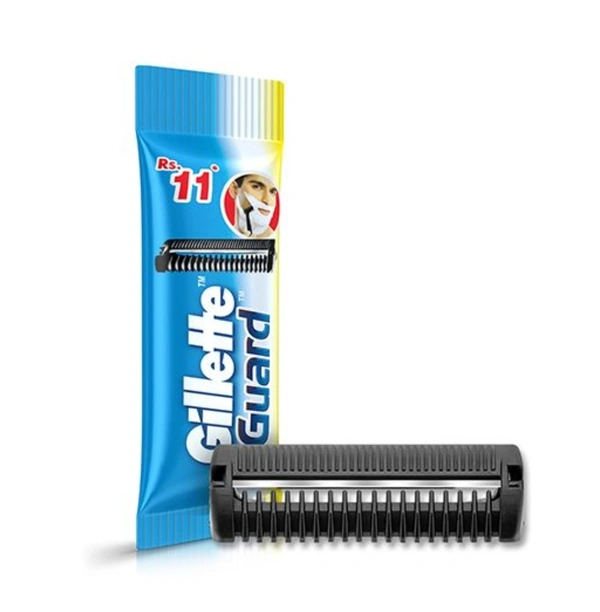 Gillette Guard is a single-blade system lined with a safety comb to prevent nicks & cuts. Superior Grip and Flexible pivoting razor head help better manoeuvre the curves of the face, neck & chin compared to double edge blade.