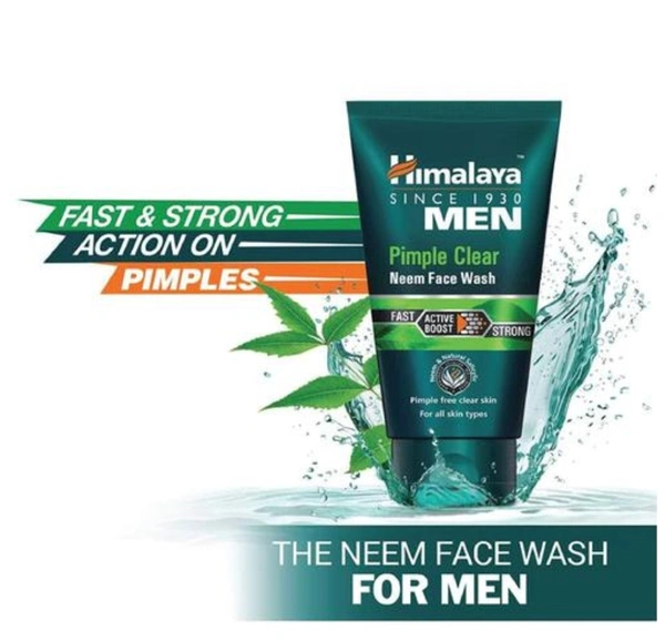 Himalaya Men Pimple Clear Neem Face Wash is a soap-free, herbal formulation that helps fight pimples in men. It is a blend of Neem and Natural Salicylic Extract that brings together their antibacterial and antiseptic properties to fight pimples. Our face wash is specially designed for men's skin and contains White Spice Active Boost Technology which helps in the rapid action of herbal actives.