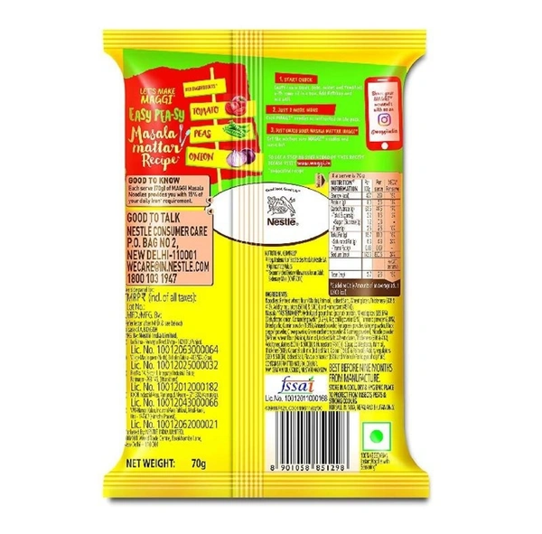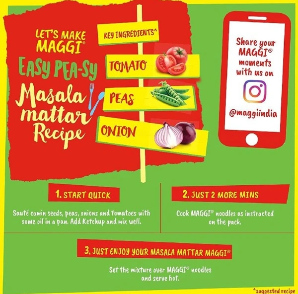 India’s favourite Masala Noodles, MAGGI 2-minute Noodles, now comes with the goodness of Iron. Each portion (70g) of MAGGI Masala Noodles provides you with 15% of your daily Iron requirement (*as per the Daily Dietary Allowances for an Adult Sedentary Male (ICMR 2010). Containing your favourite masala taste, MAGGI noodles are made with the choicest quality spices. Make your bowl of MAGGI even better by chopping up some vegetables, dropping in an egg or throwing in your favourite ingredients.