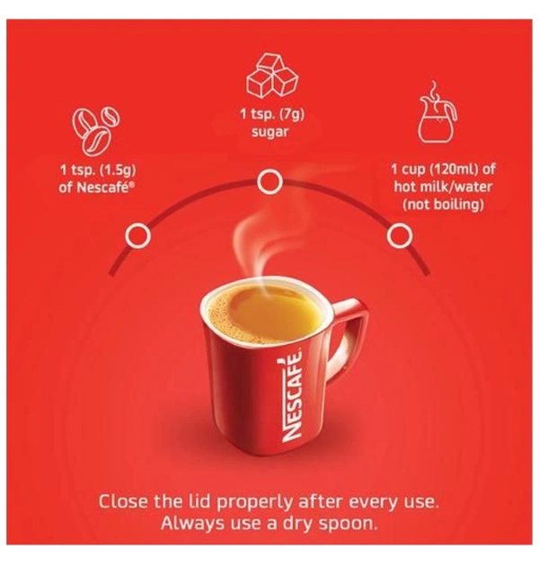 To take your coffee experiences to the next level, Nescafe, the world's favourite instant coffee brand, brings forth a rich and aromatic coffee in the form of Nescafe Classic. The unmistakable flavour of Nescafe Classic is what makes this signature coffee so loved all over the world. Start your day right with the first sip of this classic 100% pure coffee and let the intense taste and wonderfully refreshing aroma of Nescafe instant coffee awaken your senses to new opportunities. With over 75 years of experience and working with coffee farmers, to help them grow more sustainable coffee through improved crop techniques, we deliver the best coffee produced by the best selecting, roasting and blending methods.