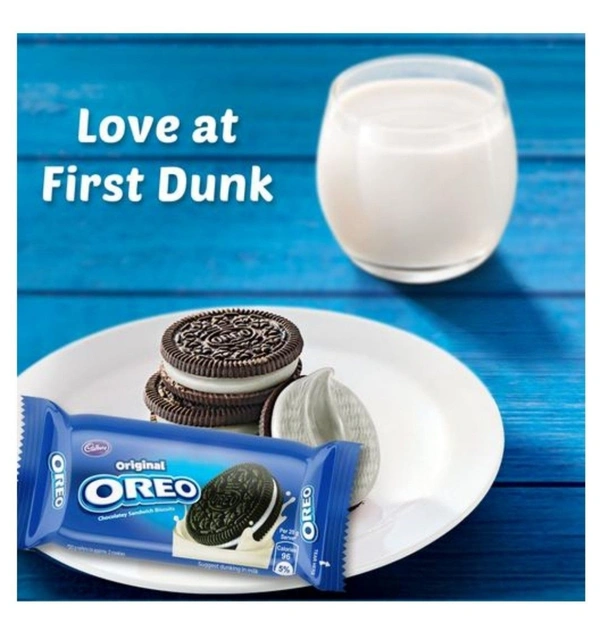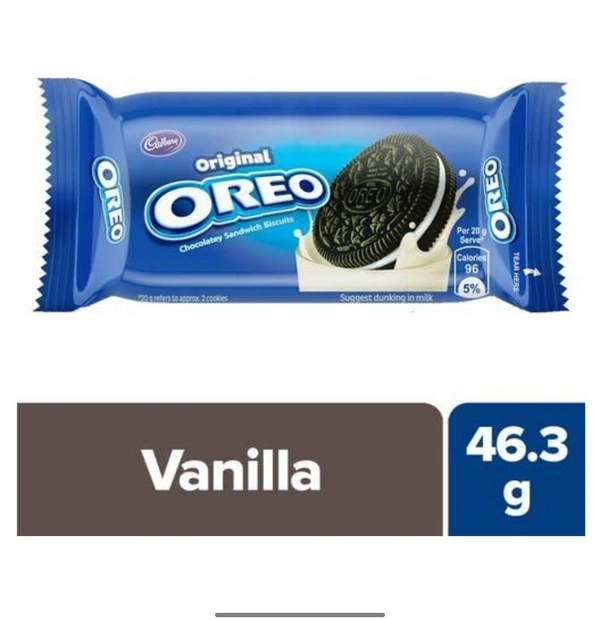 Oreo sandwich creme biscuit brings together the rich, smooth taste of vanilla creme filling with the bold taste of two crunchy chocolate wafers. Take a delicious break with an Oreo cookie, the perfect anytime snack.