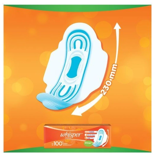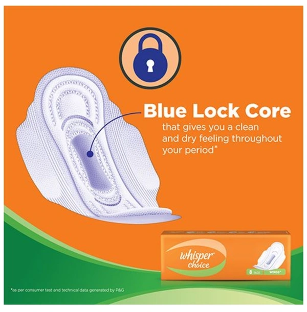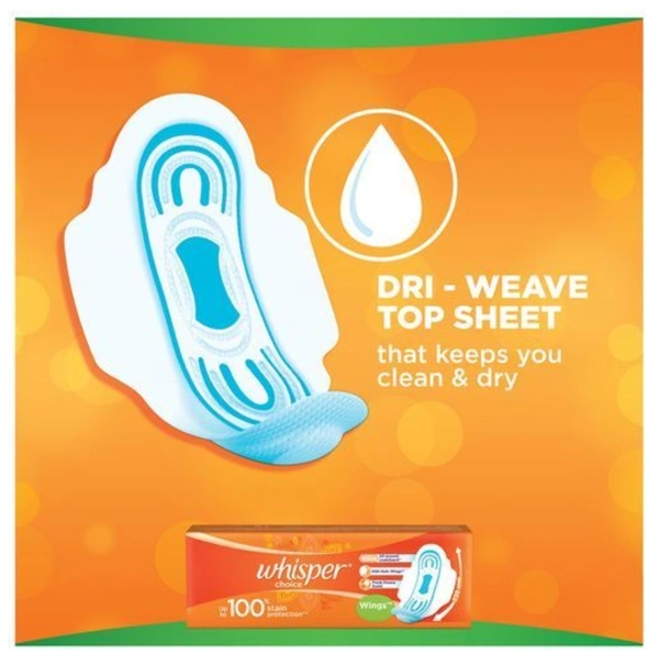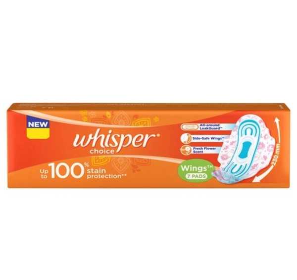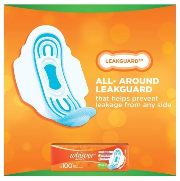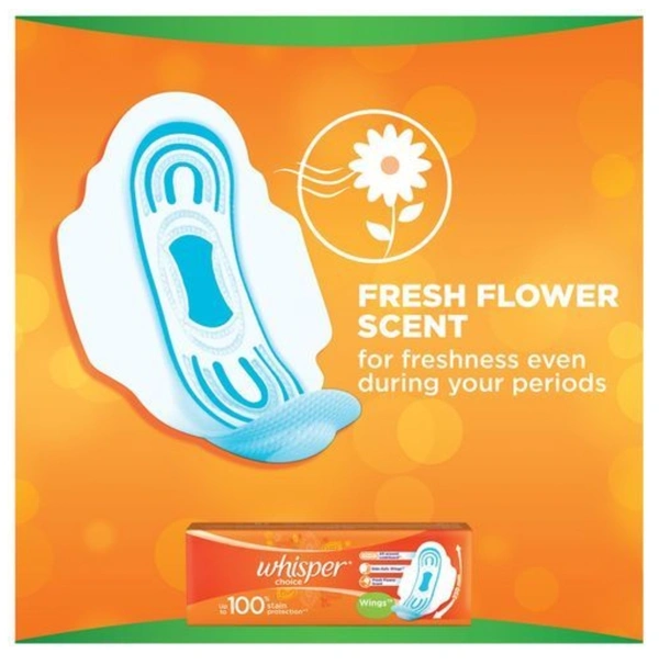 Whisper Choice Sanitary Pads help you get up to 100 percent stain protection. This revolutionary pad has wings that keep the pad in place. Its all-around leak guard protects you from leaks from all sides. Also, it has a fresh floral scent which makes you feel fresh even during your periods. Don't worry about stains and be unstoppable. Kadam Badhaye Jaa.